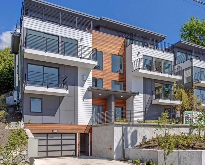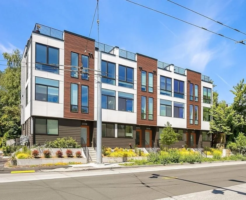 Inspired by the brownstone rowhouses of Brooklyn, this Eastlake development of 11 rowhomes capitalizes on interaction with the surrounding pedestrian-friendly neighborhood. Each unit is filled with light and has high ceilings, exposed brick walls, and roof decks with gorgeous views of Lake Union. Parking is tucked at the rear of the units in carports below the street level.